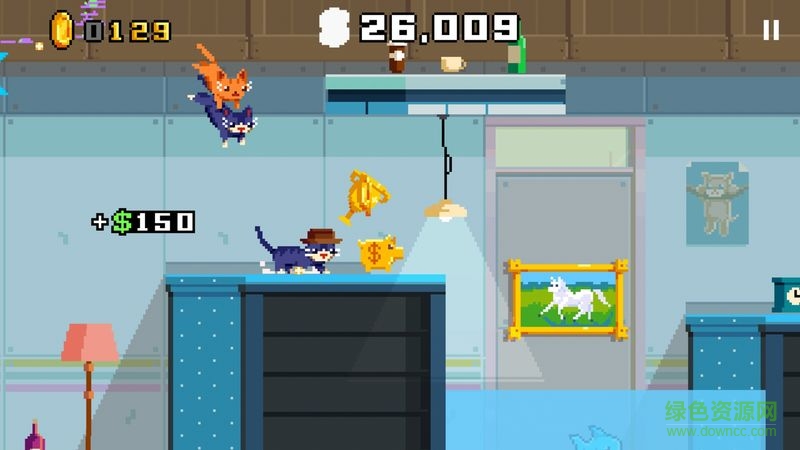 非常优秀有趣的像素跑酷游戏。我们操控猫咪不断在家中狂奔,打碎的东西越多分数越高。中途得避开狗,如果碰到其他货币,就能多猫齐飞了。