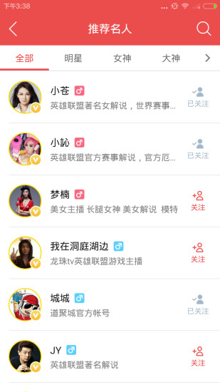 英雄联盟、穿越火线、剑灵等热门游戏女神、职业选手、高端玩家、主播强势入驻,关注认证名人,让明星大咖带你一起飞。
