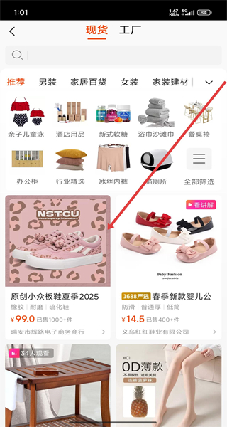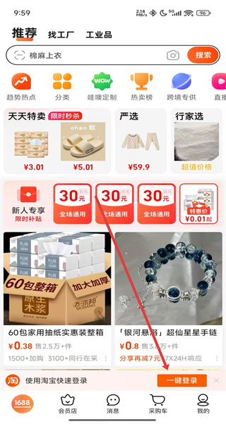 4、登录完成后,即可开始使用1688,如查看商品、参与新人专享活动等。