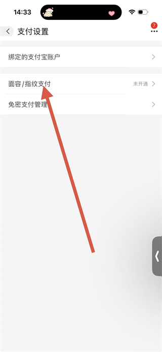 4、在支付设置页面,点击“面容/指纹支付”选项,即可开启面容支付功能。