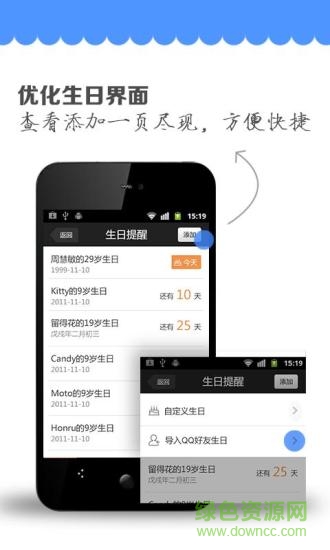 完美支持农历提醒,设置亲人、好友、同学、朋友的生日,在特别的这天,送给他们温馨的祝福