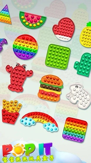 宝宝泡泡玩具盒子游戏中玩家可以通过捏泡泡的方式来释放压力,这里有很多泡泡模具,包括各种小动物、食物、水果、手套、几何图形等,有纯色的也有混合颜色的,有非常逼真的捏泡泡触感和破裂声,喜爱的朋友赶快下载体验吧!