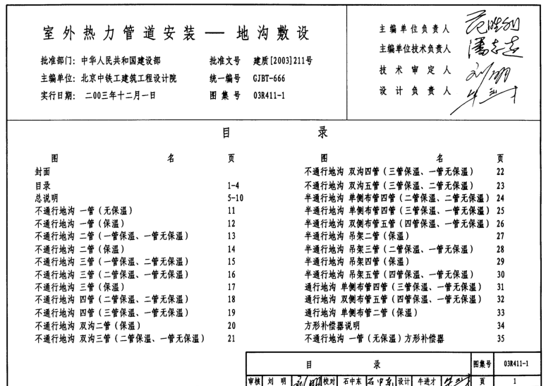 03r411 1图集是一份介绍室外热力管道安装地沟敷设的建筑施工图集,本图集由北京中铁工程设计研究院主编,涵盖了不通行地沟一管、不通行地沟四管、不通行地沟三管等等内容,需要下载的就来绿色资源网吧。