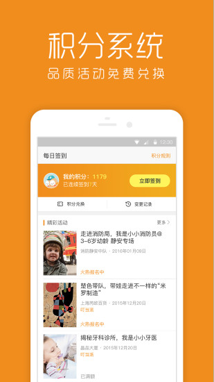 2.积分福利:大家通过签到、发言等方式攒够一定数量积分,能够兑换海量品质亲子活动哦!同时,我们会为 VIP会员定制独专属的family day。还有更多定期优惠福利,限量爆款活动等着你!加入叮当派,体验叮当新生活。