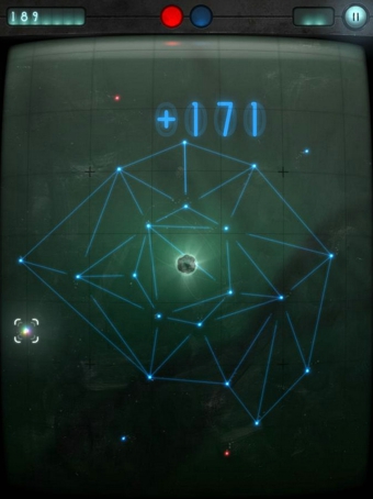 迪拉克玩法属于一笔画那种,同样也是由简到繁的设定。各关卡背景是外形不同的深空宇宙,会有蓝/红两色光点散落在上面,玩家要分别用对应颜色的光线将同色的点彼此相连。