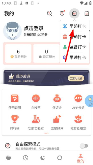 3、在弹出的打卡选项中,选择想要参与的打卡类型。