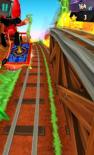 操作非常简单,玩家通过滑动控制主角的跳跃、躲闪和倾斜,在逃避女巫和鳄鱼追杀的同时尽可能的收集金币,游戏的3D画面显示还是不错的,就是人物造型不合胃口。玩家可以在游戏中购买升级6项不同的能力和各式各样的道具,在5个场景中和敌人周旋追逐。