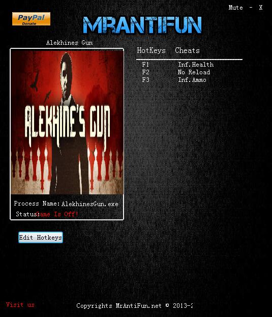 阿廖欣的枪v1.0三项修改器是一款简洁实用的游戏修改工具,这款游戏也是刚发售不久就受到了许多玩家的喜好,但是由于时间的原因市面上也能少有修改器可以使用,绿色资源网为您提供此修改器,虽然功能较少但是也满足玩家的正常使用需求了