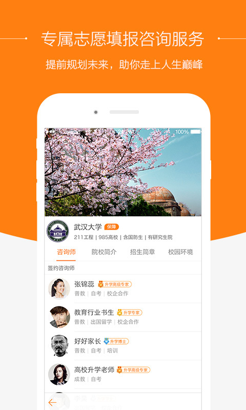 挑大学无缝对接各领域的专业升学咨询师,为高考学生提供专业的学业规划及志愿填报服务,可即时选择喜欢的升学咨询师进行在线咨询、电话咨询