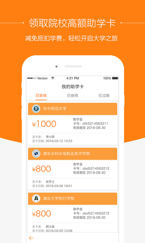 橙学院校官方合作授权推出的助学项目,在线填报志愿领取院校助学卡,可在入学时减免学费