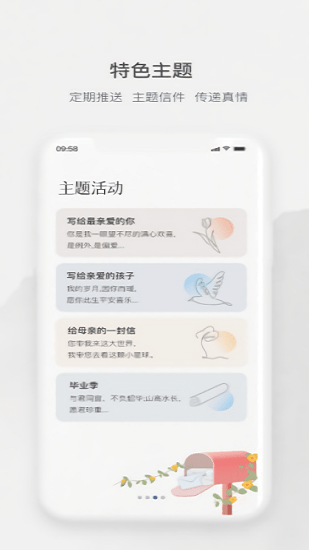 见信如晤最新版是一个非常实用的书信app,用户可以在线进行创作,丰富的模板素材可以满足大家的需求,为大家量身定制各种信件封面。平台还有很多特色主题活动可以开启,让大家尽情书写人世温情,遥寄给远方的亲友。赶紧下载见信如晤app看看吧。
