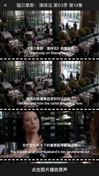 2、搜索词汇,即可得到词汇在英美剧中的应用场景和电视剧原声朗读