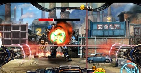 游戏在战斗过程中我们的人物并不能自由的移动,这一点相比很多大型射击游戏来说要弱了很多,角色只能固定在屏幕中的地方,而玩家只能通过滑屏来控制瞄准和射击。