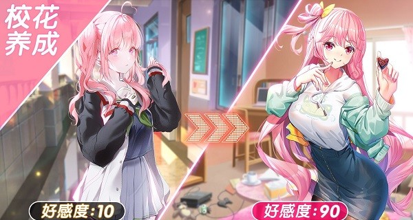 b、许许多多的二次元美少女将与你邂逅,赠送礼物提升好感度,培养更深感情吧。