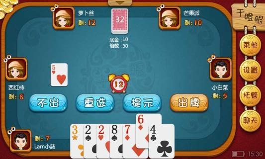 赢话费干瞪眼是最近一段时间超流行的扑克牌游戏,号称比斗地主刺激10倍。2-5人都能玩,跟大多扑克类游戏的玩法相似,都是大牌管小牌,所不同的是,接牌必须与上家所出的牌紧密相连,否则只能“干瞪眼”,有再好的牌也是白搭,运用好你的头脑反应速度变成最终赢家!