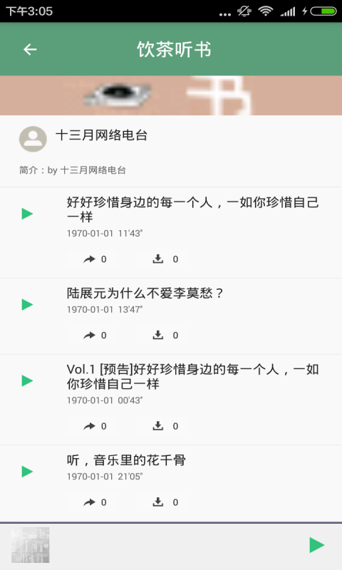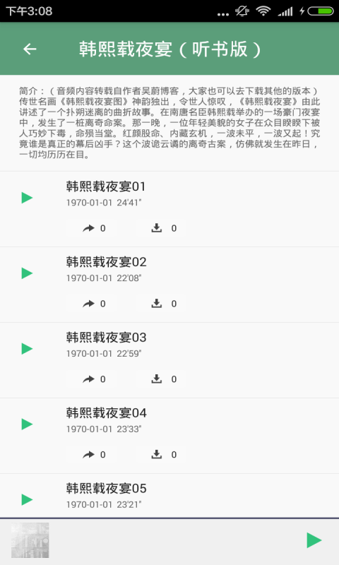 6.支持断点续听、在线听、下载听,WIFI环境下一键下载全辑;订阅历史功能,不用寻找,一键收听所有喜欢的节目!