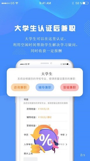 大学生帮学习软件是非常好用的一款帮助高考生们寻找大学生辅导的手机app,在这里大学生们能够进行在线认证,让后就能够在这里发布信息了,还能够让高中生们快速的进行咨询,解决各种学习上的难题,超级的好用。