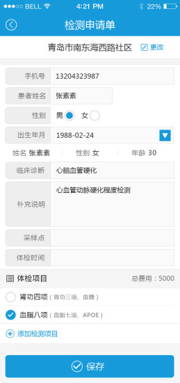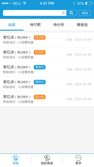 根据医生开具的检验单到采血点采血,从网上查询结果的移动平台