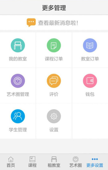 艺学教师端是帮助老师对教学进行管理的应用,主要提供“课程售卖”“租用教室”“艺术圈动态互动”等服务。