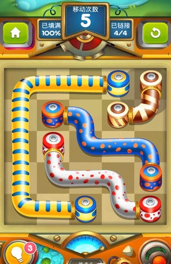 在画风方面可以说相当的清新,给人一种甜甜的感觉,并且连接管道成功之后会辅以一定的光效来带出爽快感,音效也能够在一定程度上提升游戏的整体体验。当我们进入一个新章节之后,背景也会随之改变,保证玩家能够持续获得新鲜感。