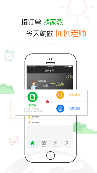 优优老师教师版致力于为每一老师提供最及时和最优质的家教咨询。优优老师教师版根据老师设置的家教信息,包括自定义的课程科目、年级、时间、地点和价格,将老师智能推荐给正在寻找相关课程信息的学生和家长。