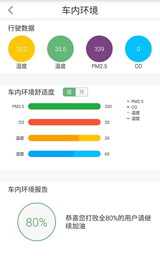1.家长可实时通过APP软件监测宝宝乘坐安全座椅时车内的乘坐环境指数;