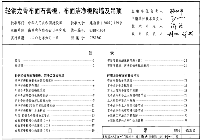 07SJ507轻钢龙骨布面石膏板/布面洁净板隔墙及吊顶简称07sj507图集,它是南昌有色冶金设计研究院主编的一款电子图集,07sj507图集高清无水印,值得收藏,只需要安装一个pdf阅读器就可以随时拿出来查看了。