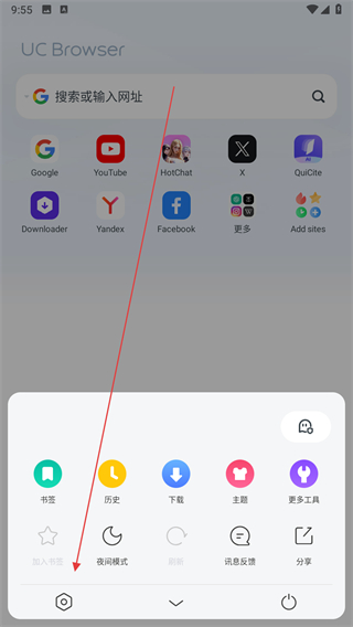 1.打开uc国际版后,点击底部的菜单按钮