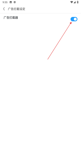 4、在广告拦截设定页面,点击广告拦截器的开关。