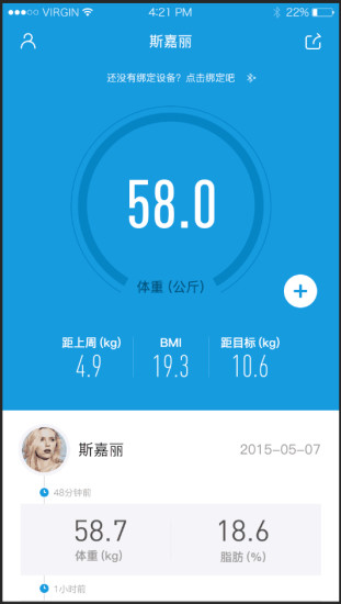 该应用程序配合吉宝体脂仪能够测试和记录您的身体健康状况