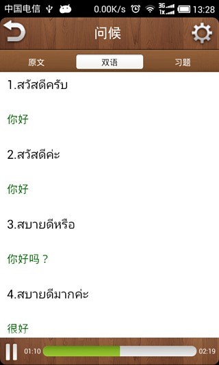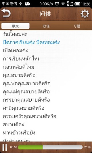 1、内置有泰语学习电子课本,用户可以随时在线进行学习