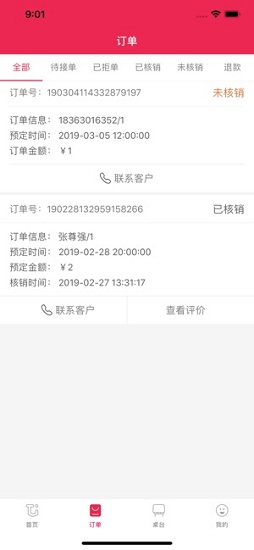 · 预定后会有APP端、公众号端、小程序端和短信提醒