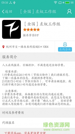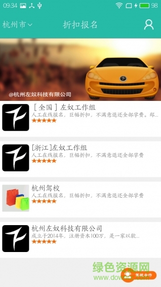 折扣学车app是杭州市一款学车报名app。想要报名学车的同学只需要下载应用,打开后找到想要报名的驾校即可随时报名。你更可以通过代理商帮助选择驾校,保证最高质量的学车体验,需要的用户就快来绿色资源网下载吧!