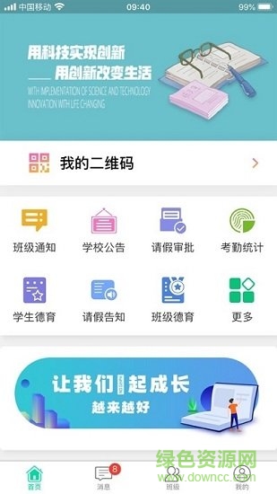 专门为教师们准备的线上教育教学服务软件,提供班级通知,二维码扫码,学校公告查看,请假审批,考勤统计,学生德育,请假告知,班级德育等功能,消息互动师生互动,班级圈子等
