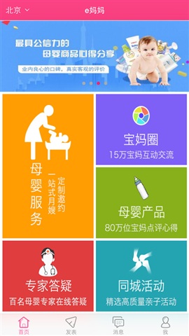 e妈妈是母婴服务领域的O2O移动平台,致力于为准妈妈和新妈妈提供最好的一站式信息服务。