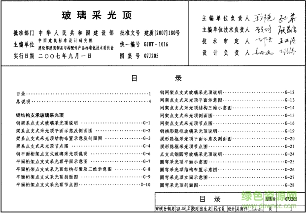 07j205玻璃采光顶图集由中国建筑标准研究院和建设部建筑制品与构建配件产品委员会联合主编,这套图集2007年开始施行,图集内容主要为各个玻璃采光顶的安装和说明,绿色资源网为大家提供07j205图集pdf免费下载,赶紧拿走吧。