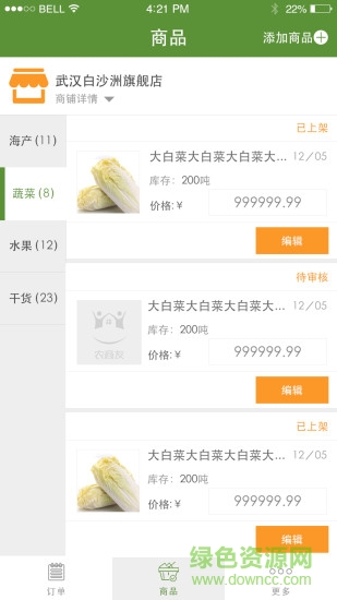 农商友农批商app是专为农批友卖家用户量身打造的掌上商城,掌上上下架各种商品,处理各种订单,查看当天的销售额和营业流水,一键打理店铺,成本低,效率好,喜欢就来绿色资源网下载体验吧!
