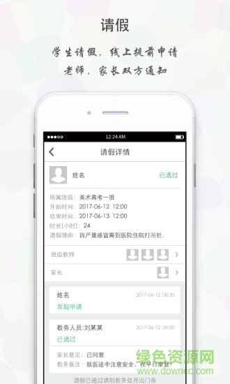 家长和学生可实时查询学生的在校情况,包含:成绩、请假、违纪等内容;方便家校透明与共同管理。
