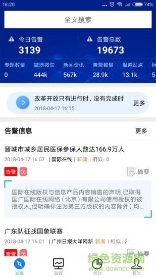4、发现界面可查看告警数量实时资讯日报简报,语音播报功能;