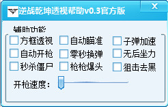逆战乾坤透视辅助是一款专门为网游逆战玩家打造的一款游戏辅助工具,为玩家提供子弹加速、自动开枪、无后坐力、抢枪爆头等功能,让玩家尽情体验游戏的乐趣,有需要者欢迎下载!