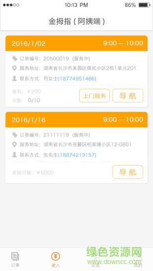 1、个人订单:附近需要找母婴服务的用户以及你正在服务的订单;