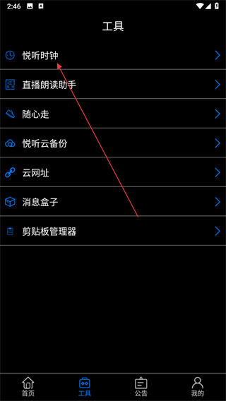 2、进入工具页面之后,找到悦听时钟选项并点击。