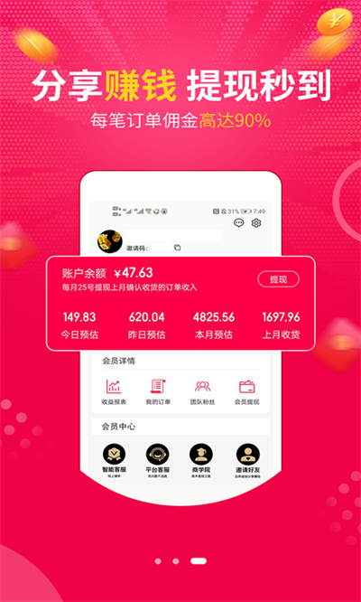 3.将优惠券分享给好友,是可以赚佣金的,好友收货的同时还会返利;