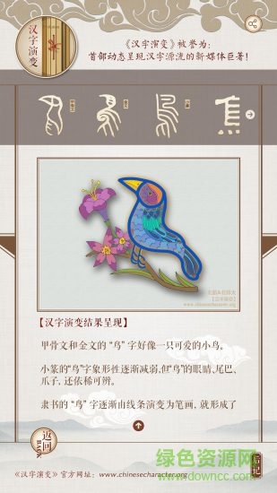 汉字演变app是一款汉字演变学习类手机软件,这里含有详细的汉字演变过程,形象的呈现了汉字文物的字形图片,让你清楚每个汉字的前世今生,欢迎有需要的朋友到绿色资源网下载使用!