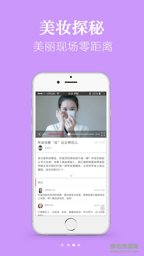优美妆app是OnlyLady出品的一款以美妆视频直播为核心的应用,为用户提供美妆资讯、美妆视频讲解、仿明星美妆等功能,有需要者欢迎下载!
