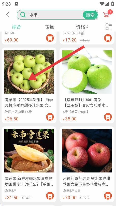 3、在搜索结果页面,找到想要收藏的商品,点击进入商品详情页。