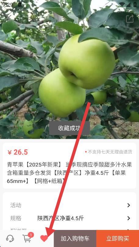 4、在商品详情页面,点击心形的收藏按钮,即可成功收藏该商品。