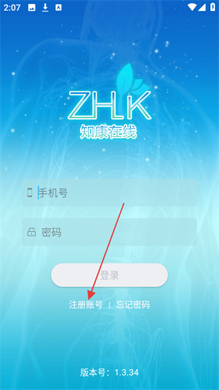 1、打开知康在线APP,在登录界面点击注册账号选项。