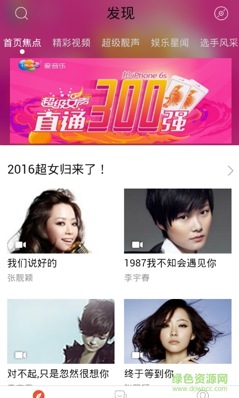 芒果直播2016超级女声ios版是专门为2016超级女声打造的直播平台,在线实时查看超级女声最新直播视频,选手个人信息查看,和最新最全的赛事资讯,想唱就唱,快来绿色资源网下载体验吧!