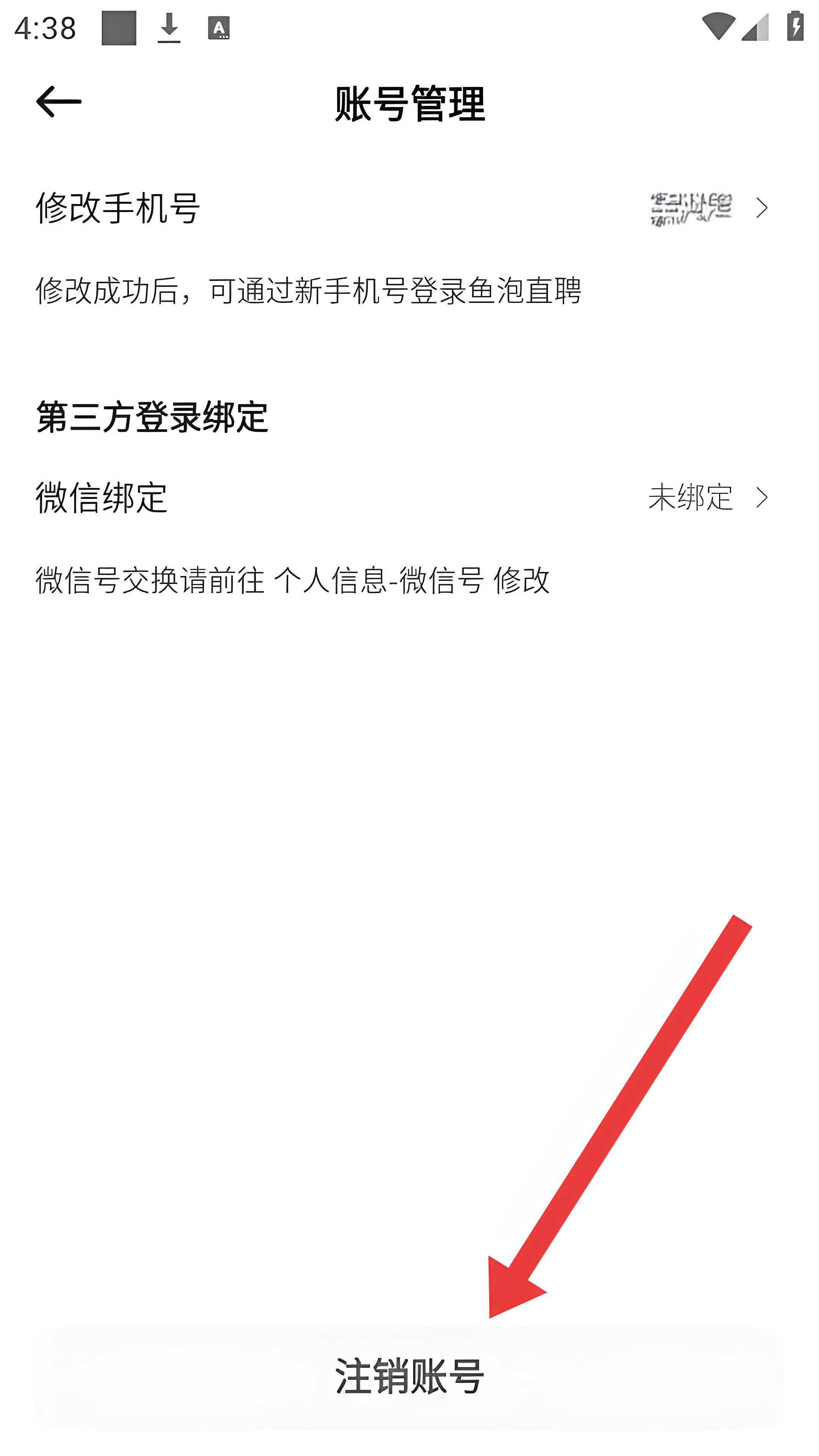 3、在账号管理页面的底部,需要点击注销账号的按钮,后续按照提示完成后续注销确认操作即可。